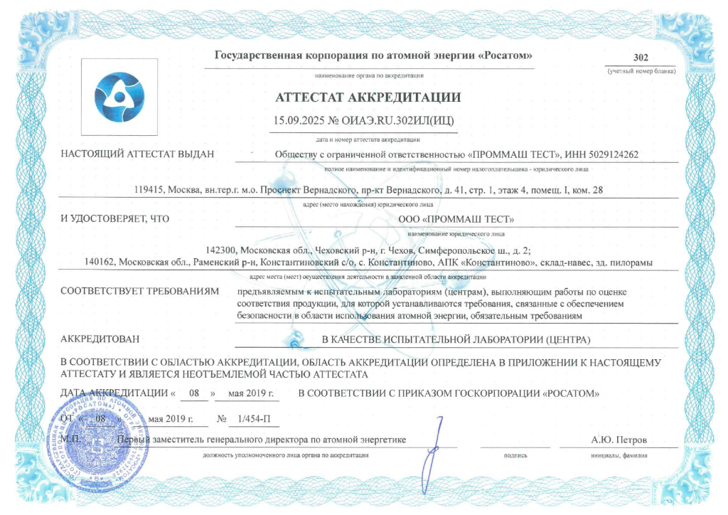 Аттестат аккредитации №ОИАЭ.RU.302ИЛ(ИЦ)